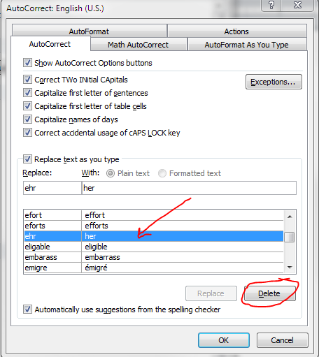 Here’s what you should do if you’re tired of having to change “HER” back to “EHR" in Microsoft Word, Excel, and other apps (I copied some of this from the Microsoft Help text):